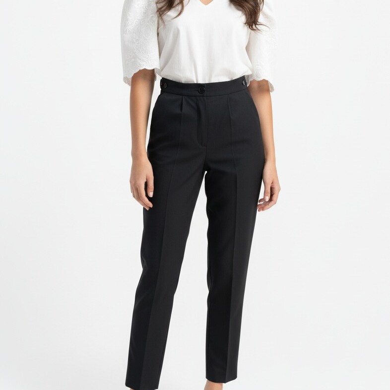Spodnie pierz ręcznie lub w pralce w zimnej wodzie, z użyciem łagodnych detergentów i programu dla wełny lub prania ręcznego. Zrezygnuj z odplamiaczy i wybielaczy. Nie używaj płynów do płukania/ zmiękczania tkanin, gdyż przyczyniają się do filcowania włókien wełny. Miejscowe zabrudzenia usuwaj przez namaczanie w wodzie z dodatkiem mydła lub łagodnego detergentu. Nie zapieraj i nie pocieraj na mokro, aby uniknąć uszkodzenia tkaniny.